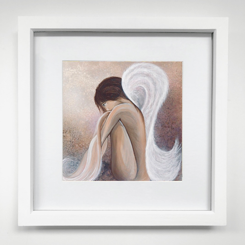 This print would make a lovely and unique gift for anyone with a love of angels and figurative art. It comes in a white mount unframed – or mounted and framed in a white wooden box frame (other colours are available on request).