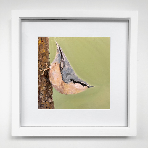 This beautiful fine art print is from my original painting of a Nuthatch titled Topsy-Turvy.
